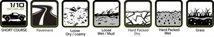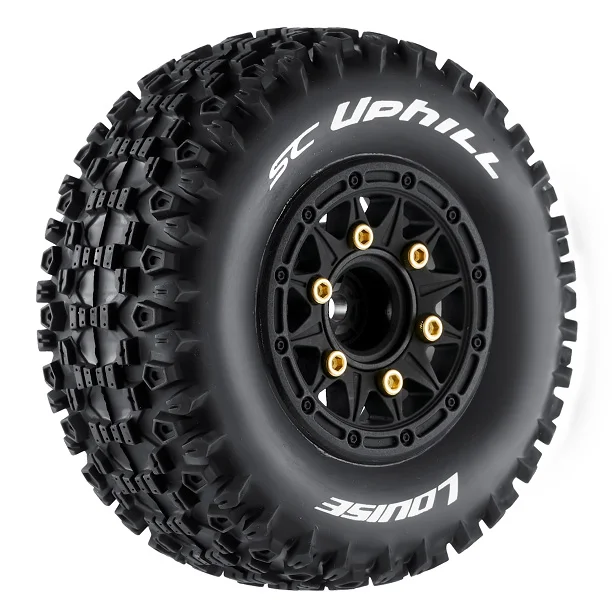 Louise SC-UPHILL är ett högpresterande 1/10 Short Course- och rallydäck levererat förmonterat på svarta nylonfälgar med utbytbart hex-system. Det innebär maximal flexibilitet – samma hjulset passar 12 mm, 14 mm och 17 mm hex, både fram och bak, tack vare medföljande nav med olika offset.