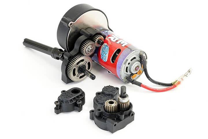 Har en ny reviderad växellådsdesign med metalldrev med omvänd drivning för att minska vridmomentet genom att drivaxlarna driver i motsatta riktningar.