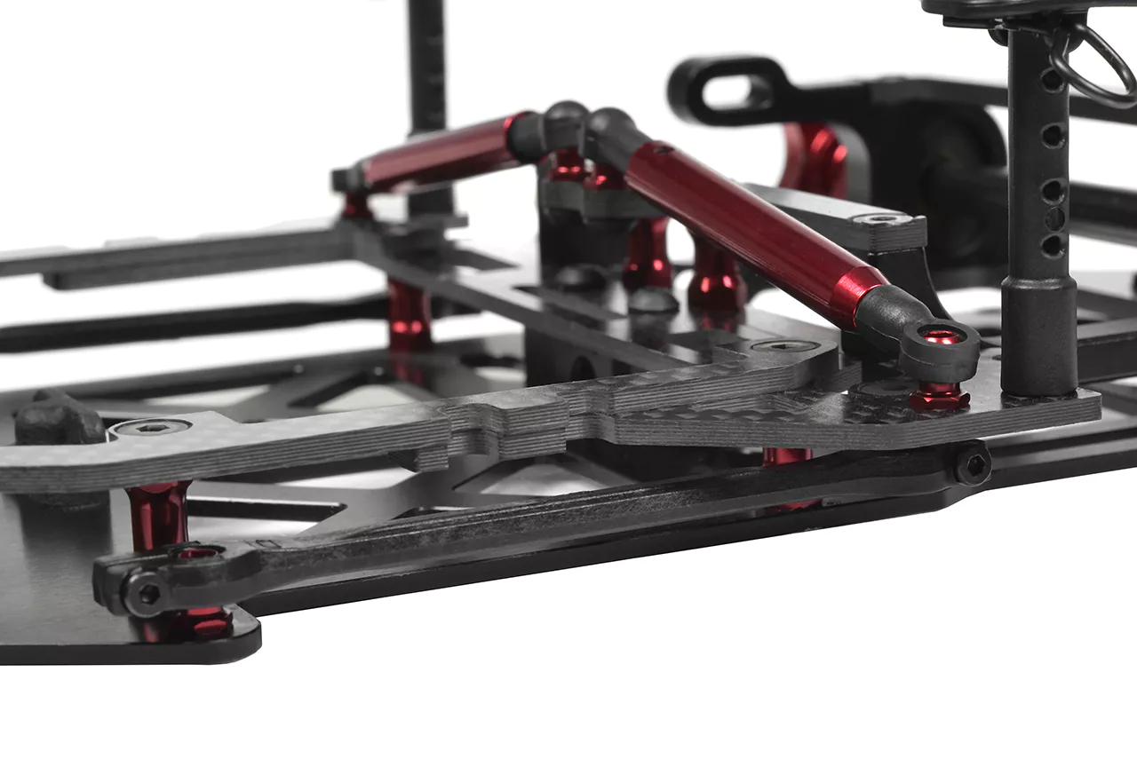 Två kompositsidor länkar, en central aluminiumgångjärnspunkt och genomtänkt geometrisk utformning ger mjuk och exakt rörelse bak – en beprövad och pålitlig lösning för 1:12.