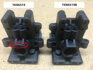 If you have the original bulkheads (TKR6519), a slight modification to the pinion bearing support will be necessary. See image below.