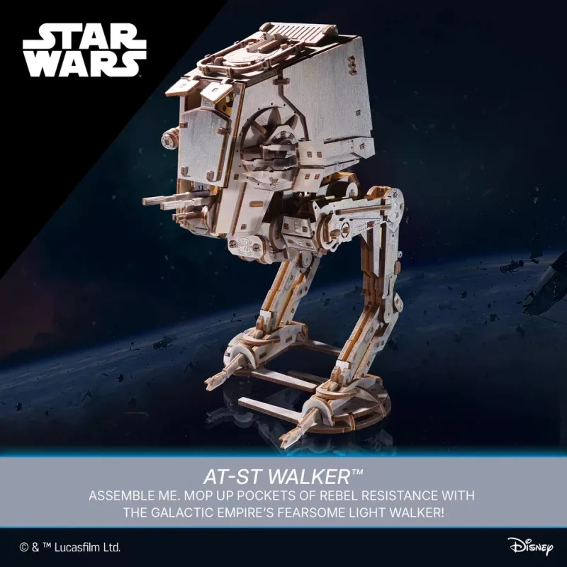 The two-legged All Terrain Scout Transport – Star Wars™ AT-ST™ – from the licensed Ugears series is a spring-powered two-legged light patrol vehicle from the Galactic Empire's fearsome arsenal. Fans of the Star Wars ™ saga will recognize these infantry war machines from the battles on Hoth and Endor, as seen in The Empire Strikes Back (1980) and Return of the Jedi (1983). Watch out for Ewok traps and ramming logs!