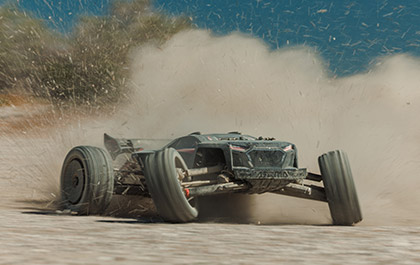 Med bältdäck, optimerad fjädring och hög downforce håller bilen greppet även i snabba kurvor.