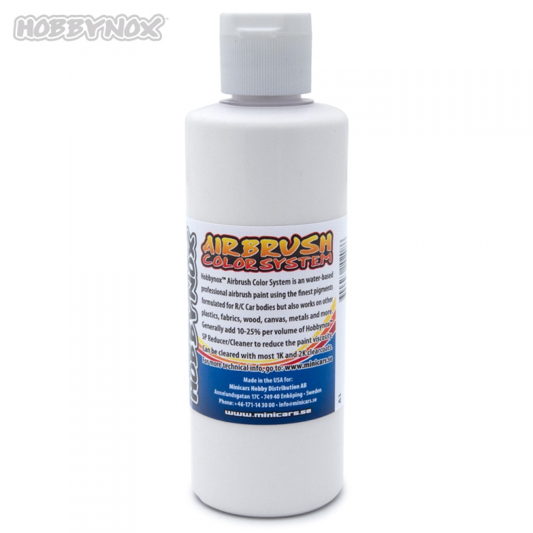 Vår vattenbaserade airbrushfärg är gjord med ljusa pigment, hållbara hartser och kvalitetsingredienser. Hobbynox Airbrush Colors fungerar på polykarbonat (Lexan®) och de flesta andra plastmaterial, tyger, trä, metaller, keramik, affischtavlor, glas och mer. Färgerna är vattenbaserade och giftfria. Hobbynox Airbrush Colors förblir flexibla och motstår sprickbildning, chipping och störningar. Hobbynox Airbrush Colors inkluderar opaque (solida), genomskinliga, neon, pärla och iridescents. Hobbynox Airbrush Colors fungerar bäst ut ur flaskan med en 0,5 mm spetsdriven luftbrushdrift @ 2.8-3.5 BAR. För mindre spetsstorlekar, sänk BAR-inställningarna och detaljerade detaljer i finlinjen - minska med Hobbynox SP Reducer / Cleaner (upp till 25%). Hobbynox Airbrush Colors bota med hjälp av mild värme och luftflöde. Föremål som ska målas med Hobbynox Airbrush Colors inkluderar: R / C Polykarbonat Bodyshells Fiskedrag Hjälmar Modell satser (om modellen inte har för mycket detaljer) Pärlfärger: Pärlfärger är pulserande färger som görs genom att kombinera pärlemorpigment av olika slag. En skillnad mot en metallfärg är att pärle effekten inte är begränsade till att gnistra med silver ensam och färgen verkar lite djupare. De är lite transparenta och kan backas upp med vilken Hobbynox Airbrush Color som helst. Rensa med (om det behövs): med vatten eller Hobbynox cleaner.