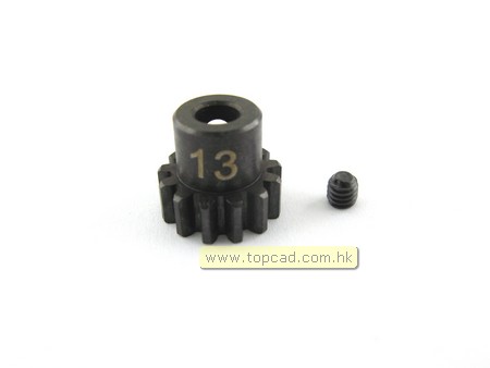 Piniong i härdat stål för 5 mm axel. 13 kuggar.