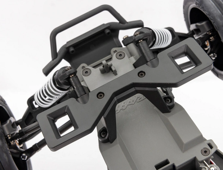 Rustlers klipplösa kaross håller sig stadigt oavsett hur grov handlingen blir. Kraftiga spärrar greppar kroppen hårt, men släpper på bara några sekunder för snabba batteribyten. Detta bekväma dolda låssystem ersätter traditionella karossklämmor med förstärkta paneler för att bibehålla karossens integritet och motstå genomdragningsskador.