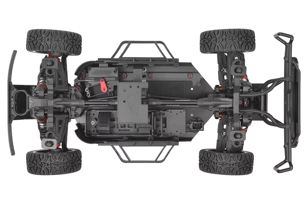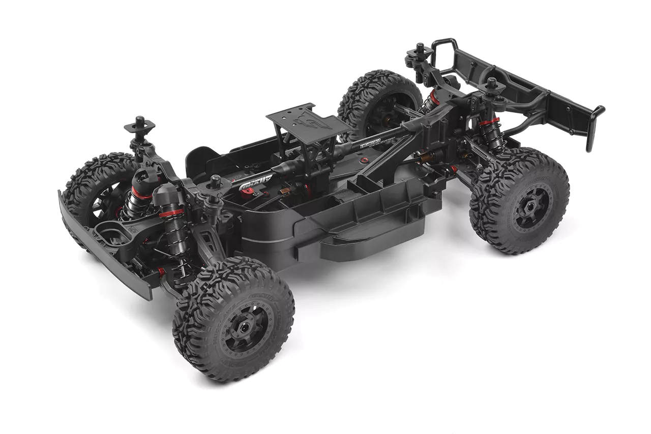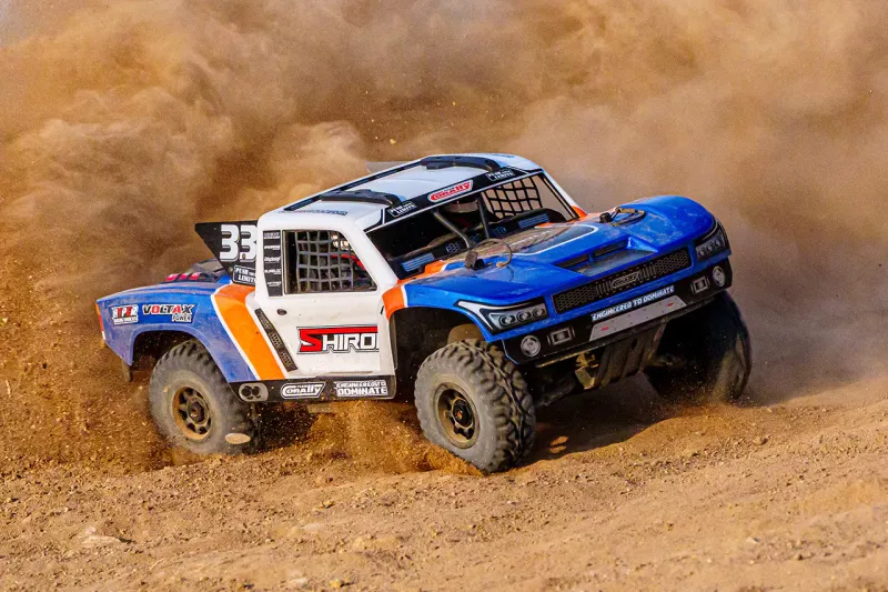 Autentisk Short Course-design SHIROI är inte bara snabb – den ser fantastisk ut! Från den formsprutade burinteriören och takräcket till de realistiska främre och bakre stötfångarna – varje detalj är designad för att återspegla verklig short course-racing. Den förklippta karossen har aggressiv styling och öppna hjulhus, vilket ger SHIROI dess omisskännliga offroad-identitet. Specialdesignade Mudclaws SC-däck på svarta flerspakiga fälgar levererar utmärkt grepp och skalkorrekt look – oavsett om du kör i jord, grus eller över hopp.
