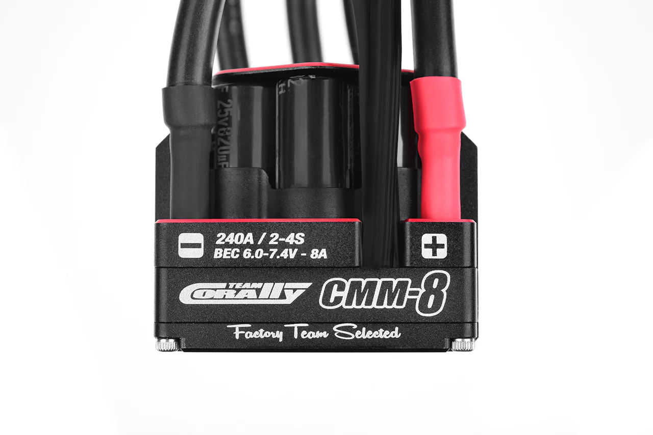 Team Corally - CMM-8 Racing Controller - 2-4S - 240A - BEC 6-7.4V 8A - Sensored-Sensorless - Black - Red Color