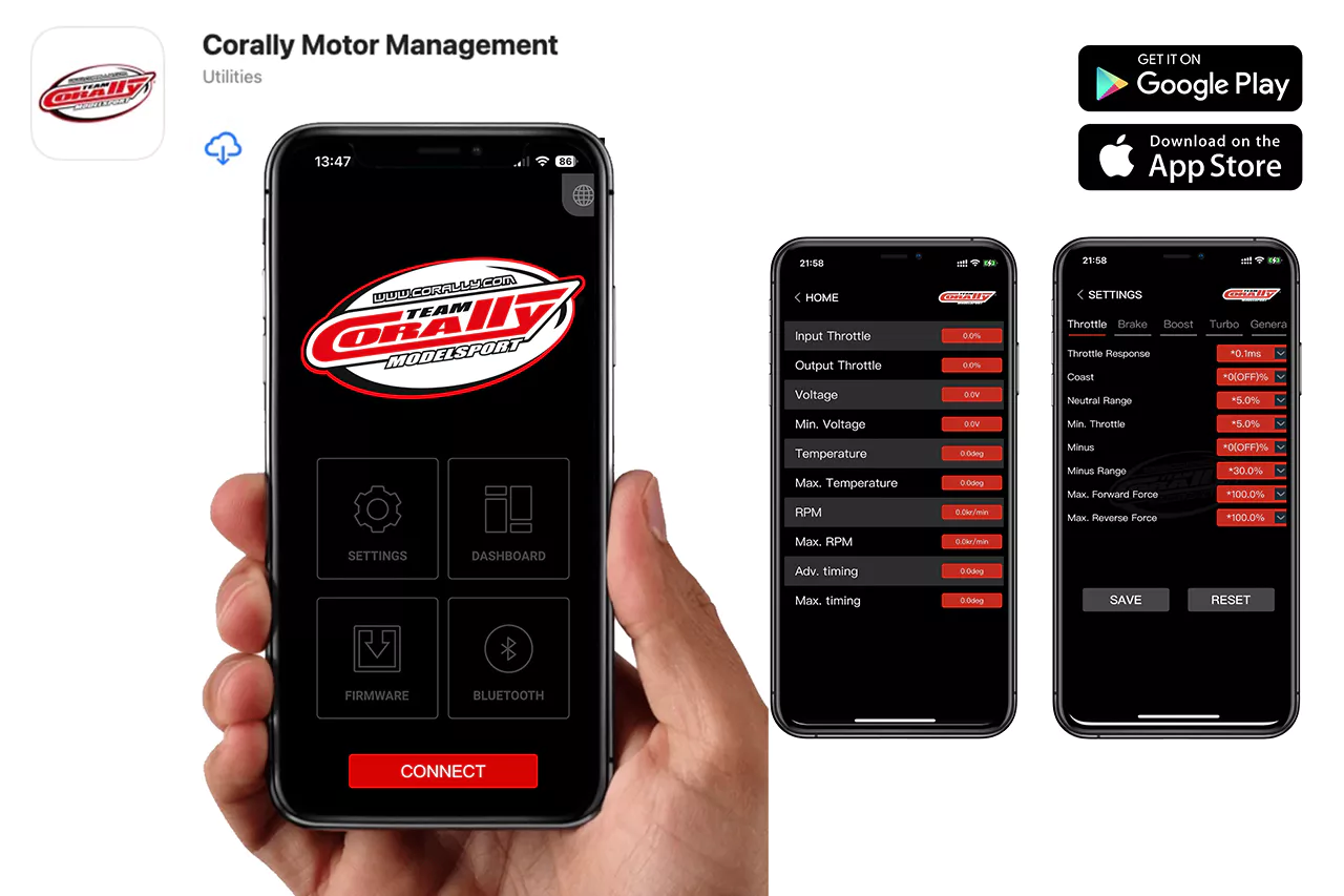 Revolutionary Remote Programming Enjoy unparalleled convenience with direct remote programming through the custom Corally iOS and Android App. All the communication devices are seamlessly integrated, allowing you to fine-tune your controller settings effortlessly.