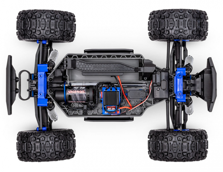 Stampede 4X4:s BL-2s borstlösa kraftsystem ökar det roliga med upp till 60 % högre hastighet och snabbare acceleration än jämförbara borstade kraftsystem. Förbättrad effektivitet, höghastighetskullager och en intern kylfläkt gör att Stampede 4X4 kan köra batteri efter batteri för nöje hela dagen. Utan kol i motorn att slita ut är BL-2s 3300 kV långvarig.