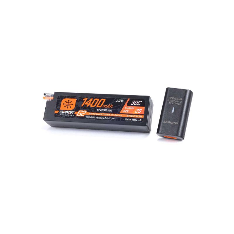 Kraftfullt Spektrum 2S LiPo-batteri och säker, lättanvänd Smart laddare