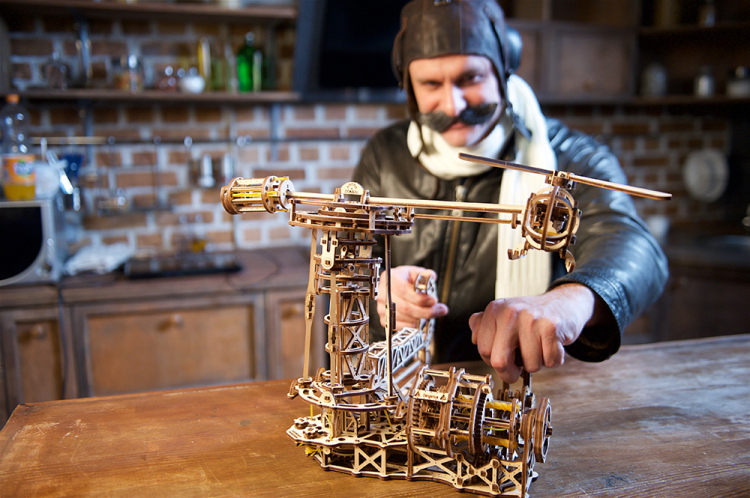 Ugears Aviator modellkit är tillverkat av hållbart trä av hög kvalitet och har allt du behöver för montering. Delarnas kvalitet är högklassig: en lasermetod används för att skära föremål från en plywoodskiva som ger exakta hårlinjesnitt. Detaljerna måste dras ut ur brädorna och monteras för att skapa en komplett modell. Som alla andra Ugears-modeller, kommer Aviator med steg-för-steg, fullfärg, riktigt lätt att följa instruktionerna på 11 språk (engelska, tyska, ukrainska, franska, polska, spanska, ryska, turkiska, italienska, kinesiska och koreanska ) och kräver varken lim eller specialverktyg att monteras helt i funktionell flygmodell.