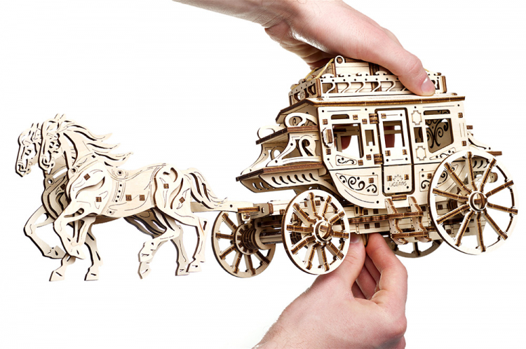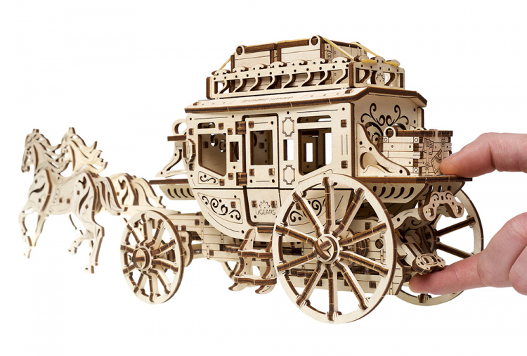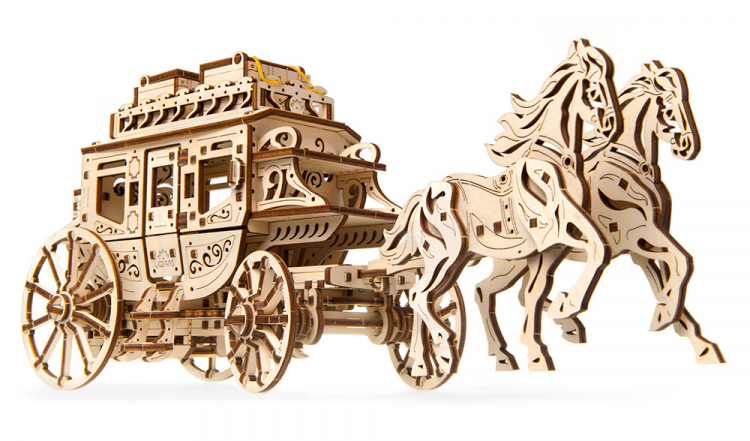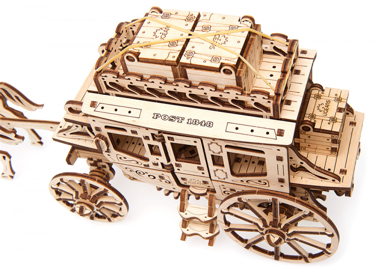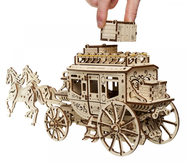 Ugears introducerar det legendariska transportföretaget från slutet av 1700 - 1800-talet, då diligensen blev ett vanligt kommunikationsmedel såväl som passagerar- och småfrakttransporter i USA. Tränaren som levererade brev, paket och pengar blev ett signaturattribut för Vilda Västkulturen, som representerad i filmer och berättelser.