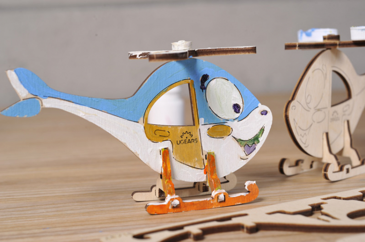 3D träfärgningsmodell «Helikopter». För barn från 5 år … såväl som vuxna i alla åldrar.