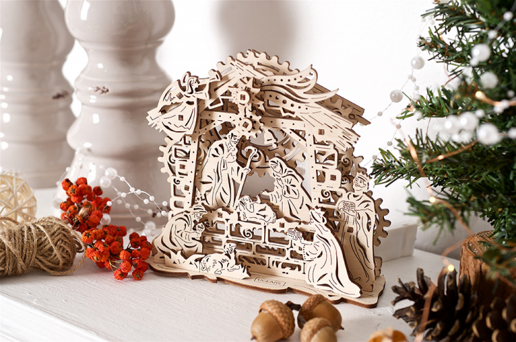 Nästan alla länder som firar jul har en tradition att installera en julkrubba: en skärm som visar nyfödda Jesus i en stall med Maria, Josef, en ängel och de tre vise männen. På olika platser och inställningar kan antalet karaktärer och inställning till att dekorera scenen variera, visar en mängd änglar, herdar, massor av dyr inredning etc. Ugears skapade en ödmjuk och öm design implementerad i trä som bäst firar födelsen av gudomligt barn av Josef snickaren.