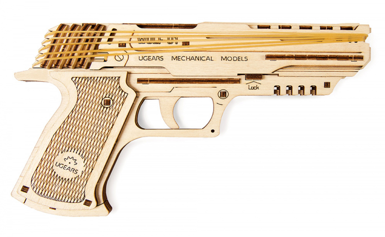 UGEARS presenterar ett nytt unikt objekt för din samling av trämodeller - laddade med roliga, riktade mot positiva känslor, Wolf-01 mekanisk pistol.